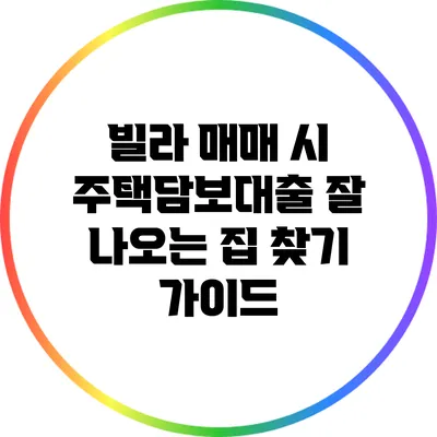빌라 매매 시 주택담보대출 잘 나오는 집 찾기 가이드