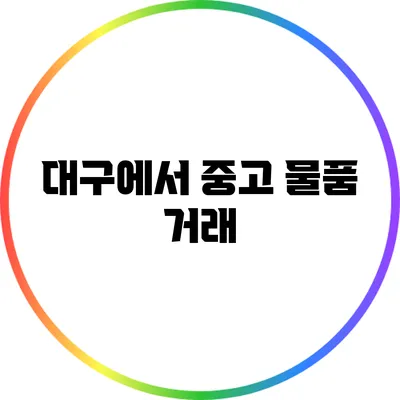 대구에서 중고 물품을 거래할 때는 여러 온라인 플랫폼을 적극 활용해보세요. 예를 들어, 당근마켓, 번개장터, 중고나라 등 다양한 플랫폼이 있습니다. -