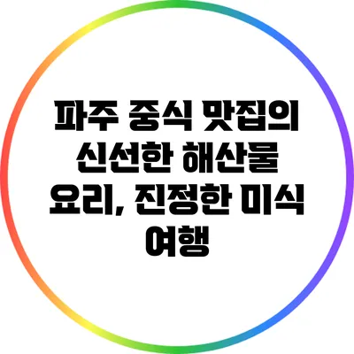 파주에는 멋진 중식 맛집이 가득하지만, 그 중에서도 신선한 해산물 요리를 자랑하는 곳들은 특히 음식 애호가들에게 인기를 끌고 있어요. 해산물의 신선함과 깊은 맛이 만나는 그 매력은 모든 미식가들의 입맛을 사로잡을 수밖에 없답니다. 이번 블로그 포스트에서는 파주에서 꼭 가봐야 할 중식 맛집과 그 안에서 직접 맛볼 수 있는 해산물 요리에 대해 소개할게요. 이를 통해 더 많은 사람들에게 파주의 미식 여행을 추천하고 싶어요.