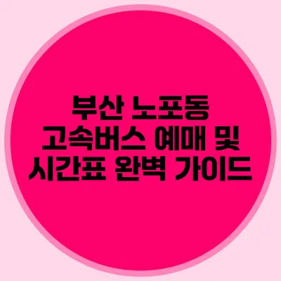 부산 노포동 고속버스 예매 및 시간표 완벽 가이드