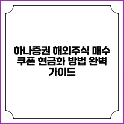 해외 주식 투자가 점점 활성화되고 있는 가운데, 특히 하나증권의 매수 쿠폰을 활용한 투자 방법에 대해 많은 관심이 쏠리고 있어요. 특히 이 쿠폰을 어떻게 현금화할 수 있는지에 대한 궁금증도 많으실 겁니다. 오늘은 해외주식 매수 쿠폰 현금화 방법에 대해 자세하게 알아보도록 할게요.